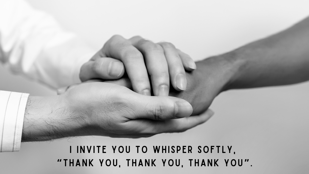 I invite you to whisper softly, “Thank you, thank you, thank you”.